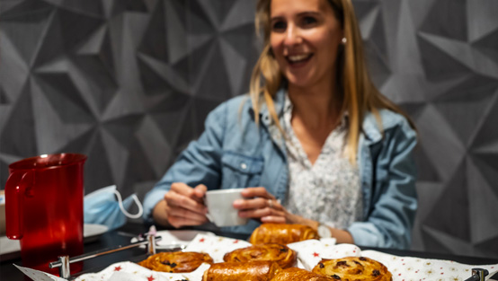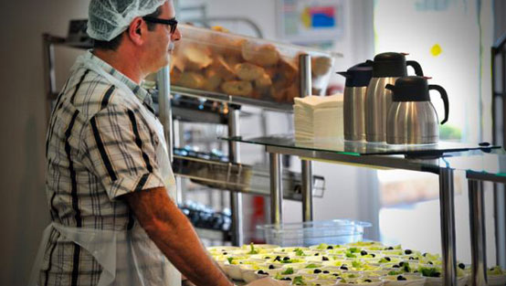 - Restauration sur place : café d’accueil, viennoiserie, service à table ou au self